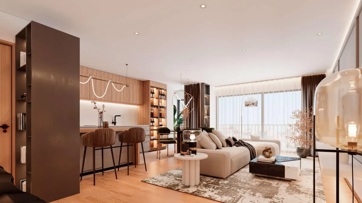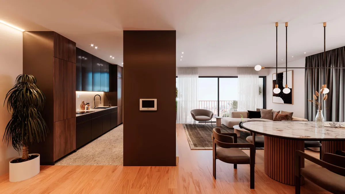 Desde a elegância dos materiais de acabamento à versatilidade proporcionada pela possibilidade de criação de cozinhas fechadas ou em open-space com o espaço de sala, os apartamentos estão perfeitamente adaptados aos tempos atuais.