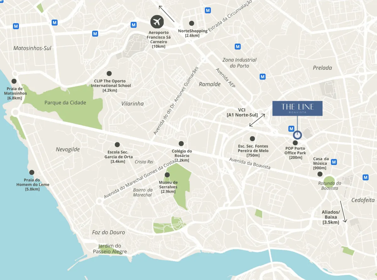 Beneficiando de uma localização central - a um passo da estação de metro de Francos e a 10 minutos a pé da Casa da Música - The Line oferece aos seus residentes a possibilidade de habitar com enorme conforto e estilo usufruindo, simultaneamente, das vantagens de viver na cidade do Porto.
